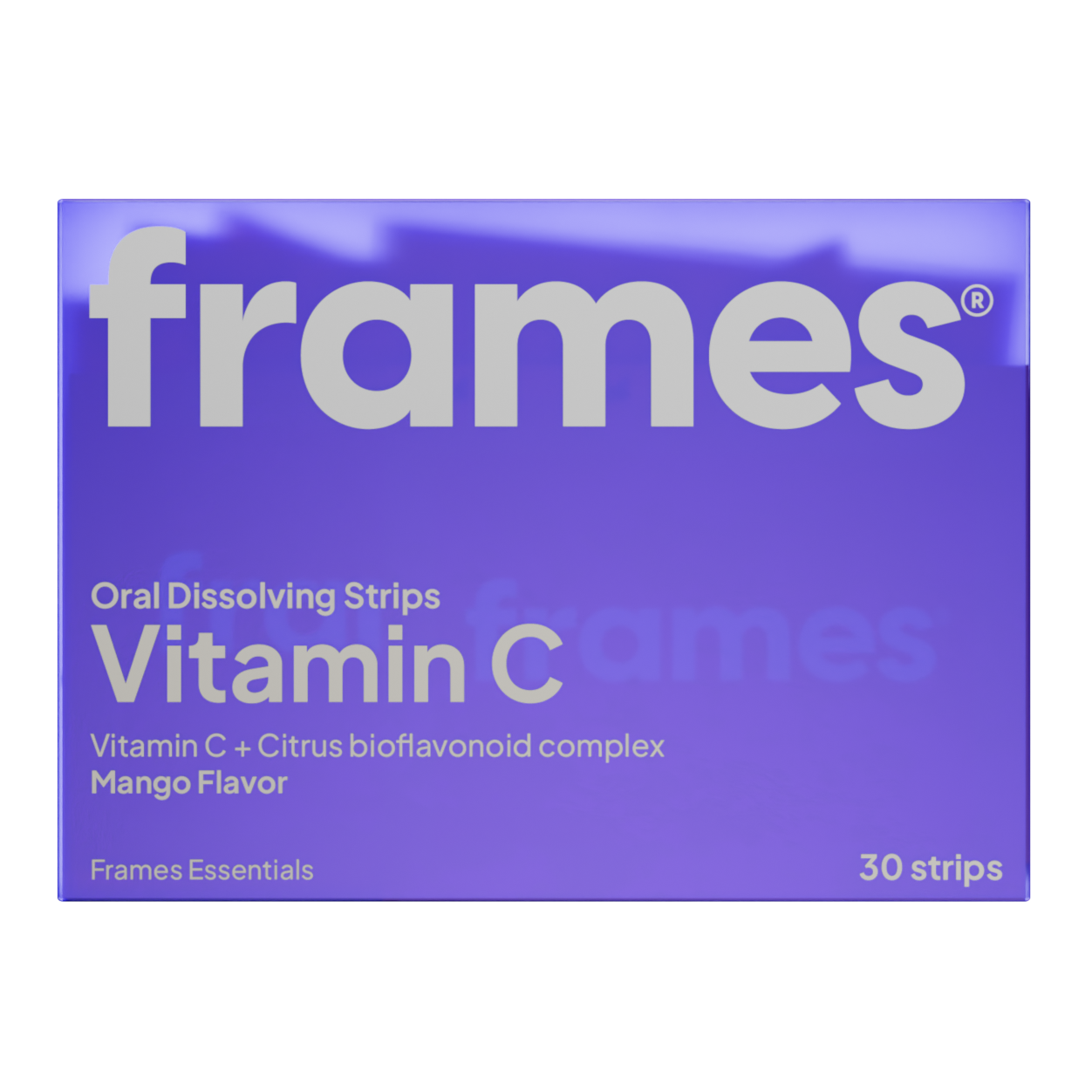 FRAMES supplementen zijn smeltstrips die je op of onder je tong legt. Ze lossen snel op in contact met speeksel en zijn gemakkelijk in te nemen zonder water.